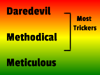 The Daredevil advances past fear-based skills the quickest, allowing early gains but tends to accumulate more technical roadblocks and injuries. The Meticulous athlete takes the longest to get over fear-based skills but that usually leads them to over prepare in the technical drills making it easy once they do overcome their mental barriers. The Methodical athlete is somewhere in the middle, allowing them to progress the most evenly.
